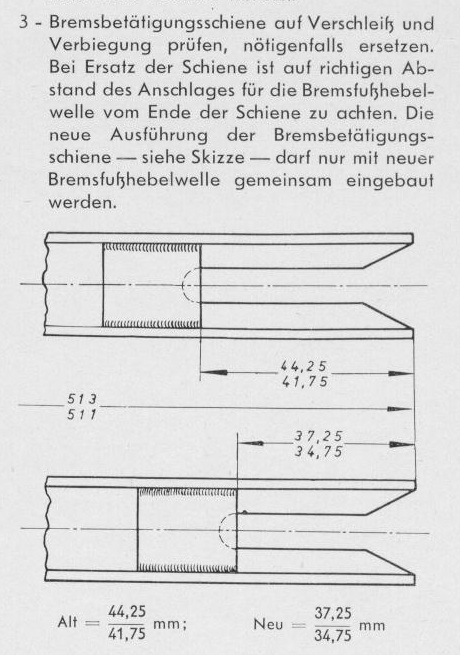 Außerdem ist das von Dir abgebildete VW Dokument leider in einigen Punkten fehlerhaft und wurde nie korregiert Es wird so dargestellt,daß der Betätigungshebel außer in der Länge unverändert ist. Das stimmt so nicht! Der Betätigungshebel der neueren Ausführung hat ein 9er Loch,der alte ein 8er Loch. Das ist in der Rep. Anleitung nicht beschrieben und vermerkt. Dadurch ist ein Vertauschen dieser Teile ohne daß man es bemerkt möglich. Ich kannte einen Käfer,bei dem waren über jahrzehnte die vordere rechte Bremse immer zu schwach. Was war es??