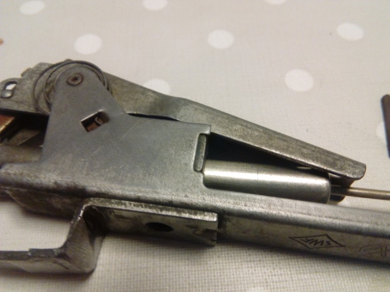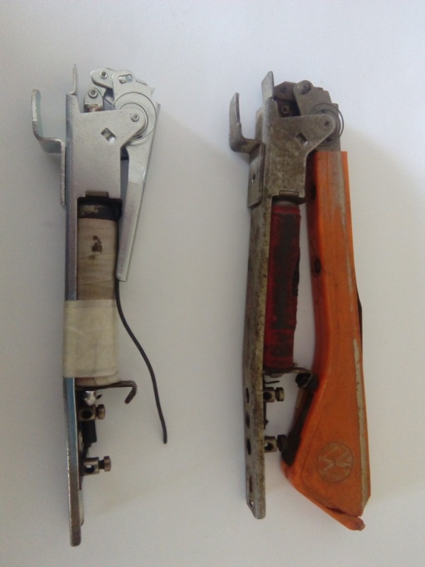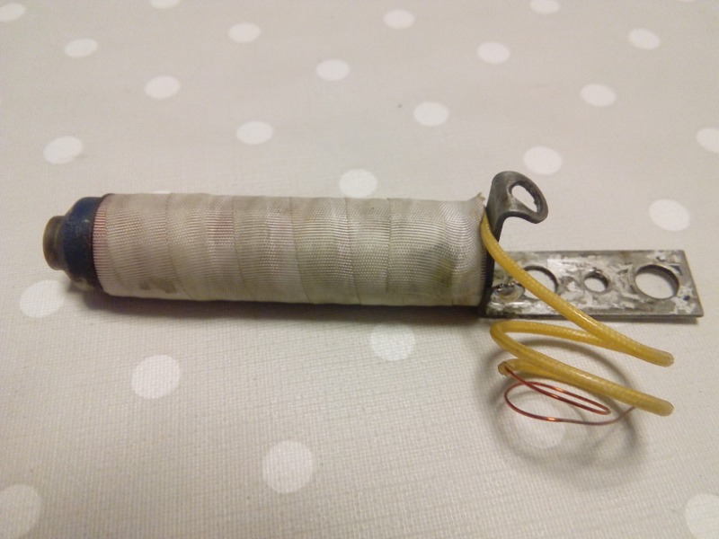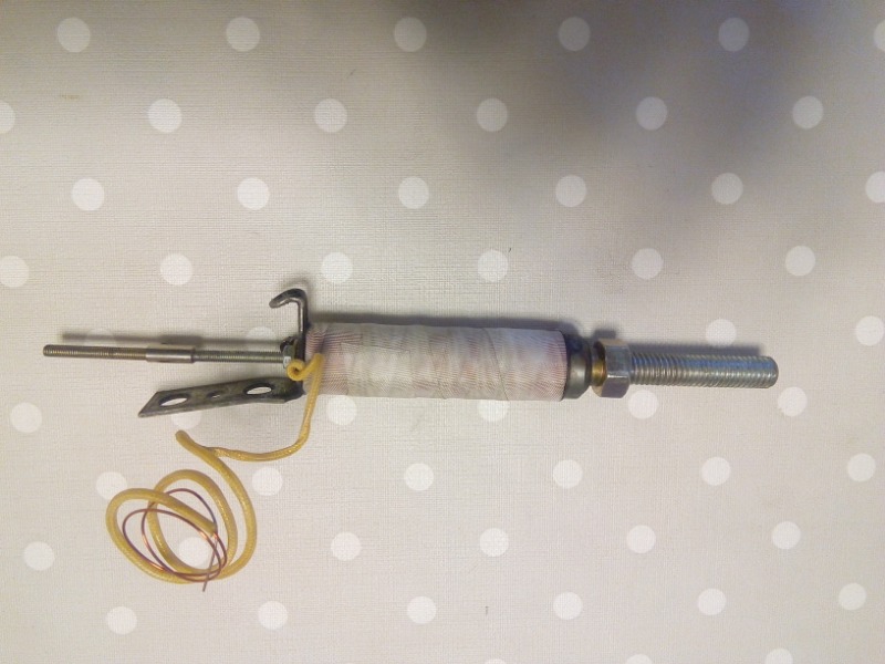 Die Niete habe ich von einer 4mm Blindniete bei der ich den Stift rausgehauen habe.Zum Wickeln habe ich einer langen M8 er Schraube den Kopf entfernt und ein Gewinde reingeschnitten. Der kleine Verbinder ist eine Lüsterklemme. Drei Spulen neu wickeln hat bei uns 120€ gekostet. Beim Abwickeln müsenn die Umdrehungen gezählt werden . Daraus und der Drahtdicke wird die neue Wicklung berechnet.Er hat es sehr sauber gewickelt so das die Spule nicht dicker wurde. Das kann ein Problem beim einbauen in den Winkerschacht sein. Beim Heb kein Problem da er breiter ist. Bei meinem 55er Standard mußte ich die Umwickelung entfernen und vom etwas dickeren neuen Lack etwas abnehmen.