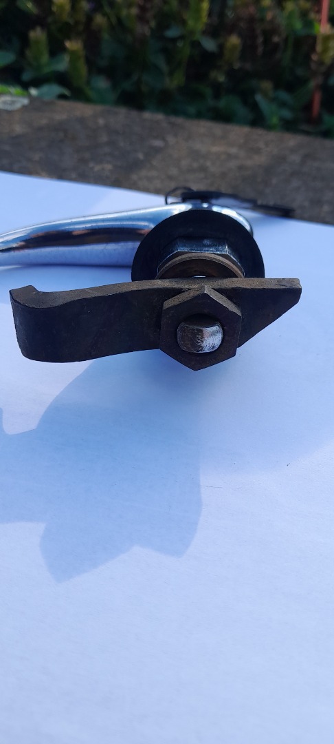 ja, den Brezel Haubengriff gab es auch abschließbar, aber der Griff im Bild stammt von einem Goggomobil. Zu erkennen ist das u.a. an dem Verriegelungsblech, das ist deutlich anders als beim Käfer. Im Prinzip ist der eigentliche Griff aber gleich, nur ist das Gewinde kürzer, das könnte man von einem alten VW Griff abtrennen und am Goggo Griff anschweißen.