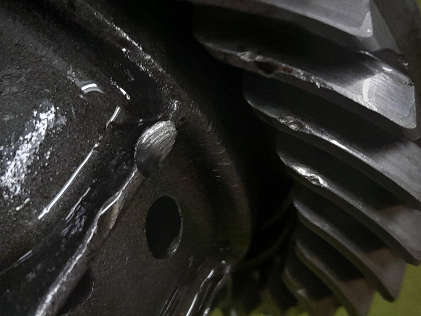 So passiert am Dienstag nach meinem Italienisch Kurs. Die AHK demontieren ist immer eine kleine extra Arbeit. Jetzt wohnt da aber vorrübergehend ein H Motor mit 44PS im dafür viel zu engen hinteren Abteil. Der Motor muß im Motorraum aller seiner Anbauteile entledigt werden. Ein schöner Spaß. Mittlerweile liegt das Getriebe demontiert auf der Werkbank mit einem sehr ungewöhnlichen Schaden. Vom Differentialgehäuse ist der Teil abgebrochen der in das Lager geht. Natürlich gibt es noch Folgeschäden vor allem am Triebling und dem Tellerrad. Ein Gehäuse dürfte noch im Fundus sein. Triebling und Tellerrad waren NOS, schnief, schnief. NOS Ersatz dürfte schwierig werden. Die Macken am Rand ausfeilen???