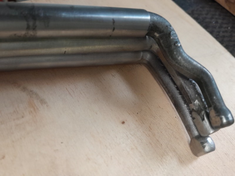 Heute habe ich mich aber durchgerungen den Brezelschaltfinger zu modifizieren. Der Finger des Vollsynchron ist beidseitig kürzer. Neben dem originalen Kopf habe ich mit Schutzgas aufgeschweißt. Danach Schleifen und kürzen auf das Maß vom Vollsynchron. Das hat besser geklappt als gedacht. Den Schaltfinger habe ich gekürzt. Jetzt muß wieder eine 60 Grad Senkung für die Schaltkupplung unter der Rückbank erfolgen. Den Senker habe ich gerade erstmal bestellt. Inzwischen kann ich eine Verschlußplatte ohne Aussparung für den gekröpften Schaltfinger anfertigen und dann alles Alu verschweißen.