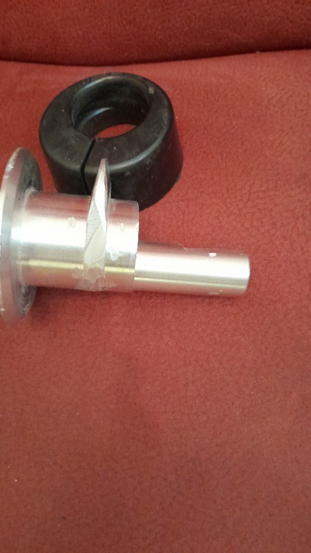 ich habe mich jetzt auch an das Drehen getraut. Zuerst dezentral 15mm für den Schaltfinger gebohrt, dann mit dem Dreibackenfutter die Kontur rausgeholt um dann zum ersten Mal mit dem Vierbackenfutter um die 15er Bohrung auf 24mm abzudrehen. Mit der Flex die Aufnahme für den Gummi bearbeitet und dann das Drehteil an den Schaltkopf des Vollsynchrongetriebes angepasst. Nächste Woche habe ich einen Termin zum Schweißen.