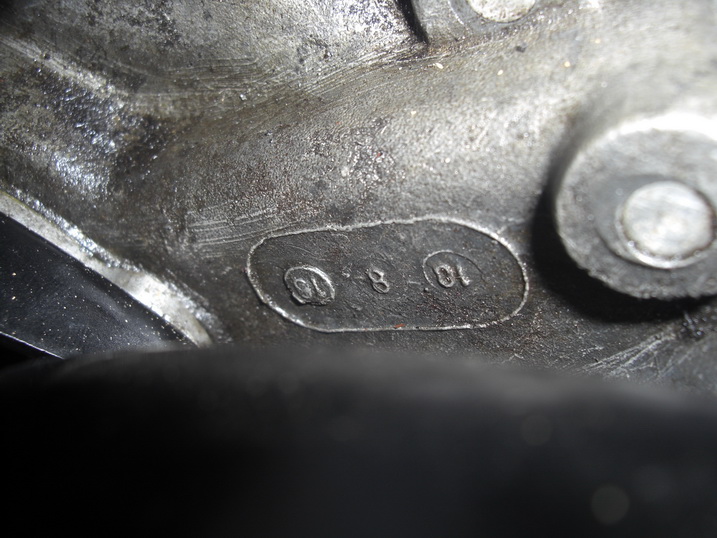 Außerdem glaube ich, dass das schräg rechts oberhalb der Nummer eingeschlagene "A" nachträglich in den Motorblock eingeschlagen wurde - z.B. irgendwann nach 1960- aber noch bevor der Motor überholt wurde. Dann wurde das Gehäuse überarbeitet und die alte Nummer ausgefräst und mit der neuen Nummer war dann auch Platz für den Motorkennbuchstaben vor der Nummer.