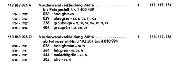 Ältere Ausgaben waren leider weniger aufschlussreich, oder nicht vollständig. Deshalb musste ich zurückgreifen auf Ersatzteileliste August 1970, im Archiv als ET-0001 (Inhaltsverzeichnis / Farbkombinationen) und ET-0009 (Beispiele aus Hauptgruppe 8 / Aufbau).
