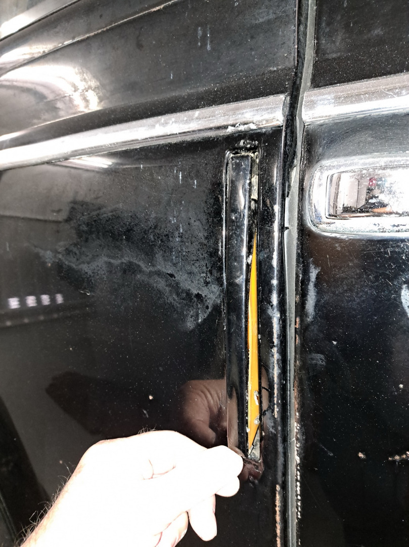 Die Klemmleisten auf der Trittbrett-Aussenseite waren links und rechts sehr verschieden (der Karmann hat offenbar verbaut, was grad rumlag...)