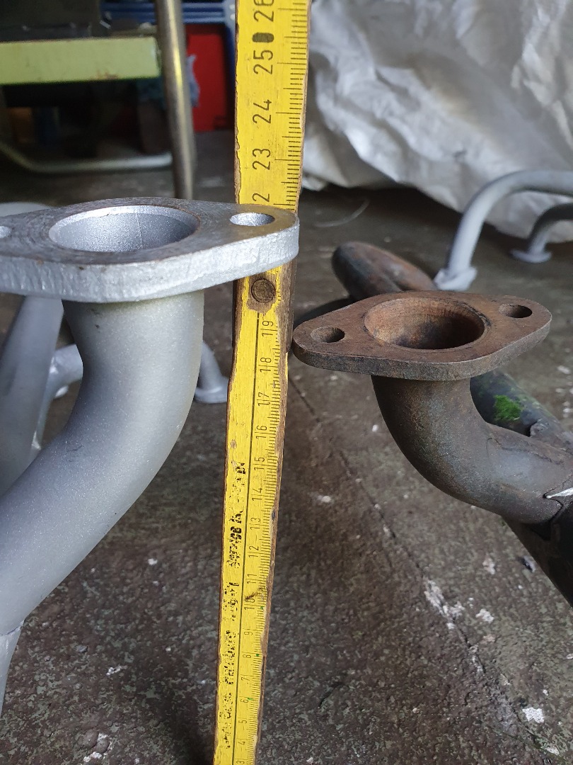 24,5PS Rohre haben die gleiche Nummer wie 30PS, 111 129 701 nur ohne Änderungsindex (Buchstaben) am Ende der Nummer! Sind also auch leicht mit dem 30PS Rohr zu verwechseln, beim 24,5PS Rohr ist nur der Durchmesser für den Flansch im Zylinderkopf kleiner als beim 30PS Rohr (das Maß habe ich leider nicht parat).