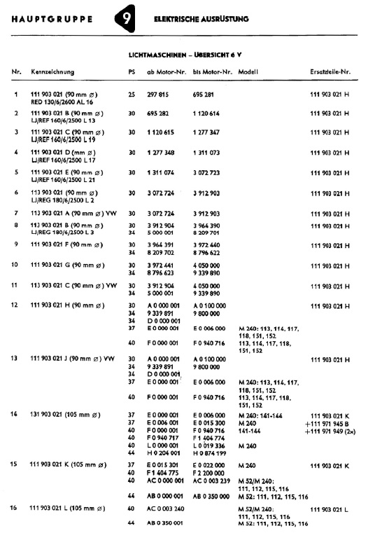 Danke für die Info - Ich habe nicht gedacht das es so viele verschiedene Lichtmaschinentypen gab.