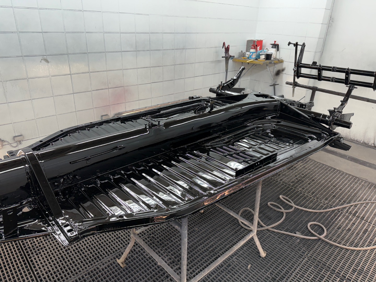 Die Bodengruppe ist komplett zerlegt worden und dann gestrahlt worden und dann lackiert worden