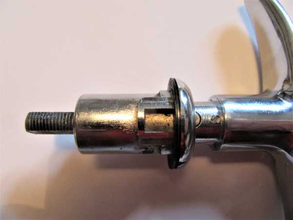 Übrigens lässt sich das Schloss auch aus dem Griff ausbauen, wenn Du die kleine Madenschraube zwischen T-Stück und Sperrbolzen herausdrehst. aber Vorsicht, dabei können die Schließplättchen herausfallen und zu einer großen Fummelei werden wenn du das Schloss wieder einbauen willst!