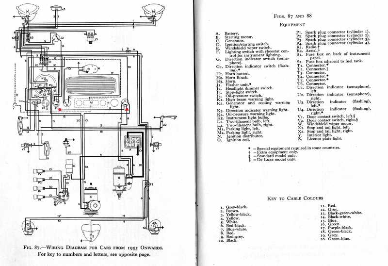 Wenn es noch kein kombiniertes Anlass-/Zündschloss gab geht der 6,0 mm2 Draht vom Anlasserklamme 30 (= wo auch der Batteriekabel ist) nach vorn, direkt nach Lichtschalter Klamme 30. ALLE Verbraucher werden hier gemessen (roter O im Schaltbild 1953). Das heist aber: AUCH den Magnetschalter-Strom beim Anlassen!