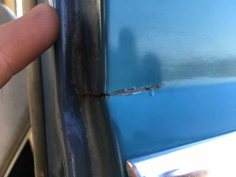 Dafür jedoch etwas, was mich doch überrascht hat: Ein Riss in der B-Säule außen. Er geht in jede Seite ca. 2cm. Das könnte ja eventuell diese Geräusche verursachen.