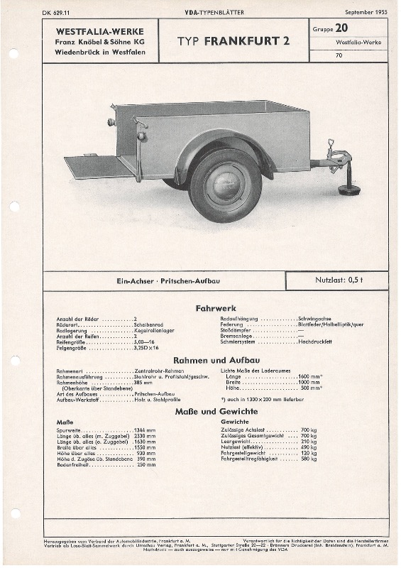 Westfalia Anhänger Typ Frankfurt 1955