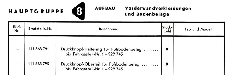 Zwitter und frühe Ovalis hatten keine Löcher in den Gummimatten, sondern eine Art von Schnappverschluss. Am Boden war dan eine ziemlich kleines Gegenteil als Halterung. Weil beide Teilen von Metall waren rostete das ungemein, und könnte manchmal nicht mehr gelöst werden. Druckknopf riess ab von den Matte, Bodenteil verschwand fast restlos....