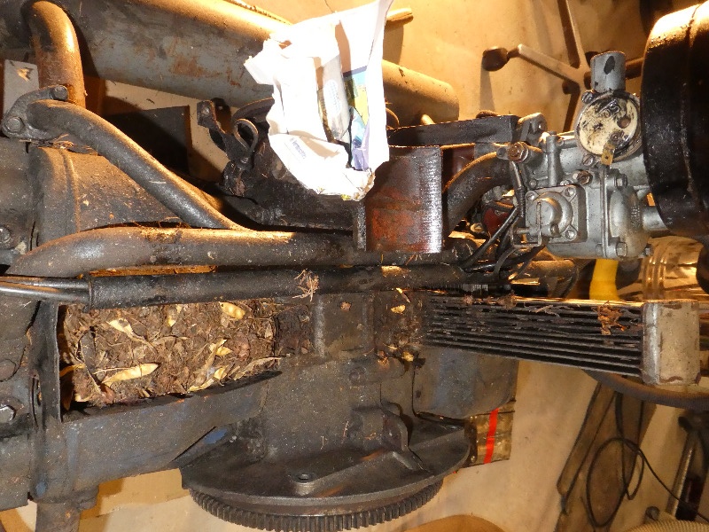 Der Motor ist wohl tatsächlich im Mähdrescher gelaufen, daher die Verstopfung zwischen den Kühlrippen, kann mir nicht vorstellen, dass das allein von einem Mäusenest kommen würde.