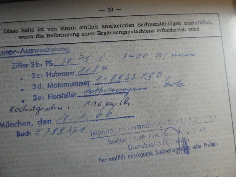 deine Aussagen zur Motornummer klingen plausibel. Das einzige, was mich irritiert ist die Tatsache, dass ich Motornummern bisher nur mit 1-0... vorneweg kannte. So sind sie im Brief eingetragen und bei den mir bekannten Motoren eingeschlagen. Kann es sein, dass das Werk zwischendrin mal nur die sechsstellige Nummer eingeschlagen hat, dien sonst auf die 1-0 folgt?
