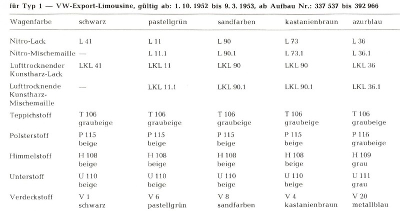 Schau mal im digitales Archiv unter Ersatzteile / Der Berater ET-0553 enthält die Farbkombinationen 1.10.1952 bis 1954.