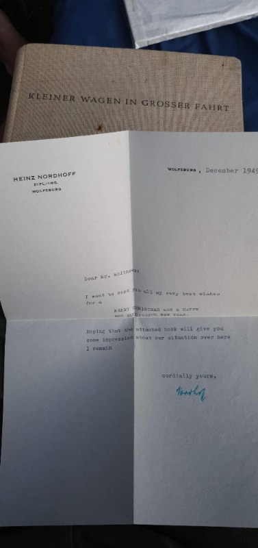 Vorne im Buch war ein persönliches Schreiben von Herrn Nordhoff an einem Herrn Smithson zu Weihnachten 1949.