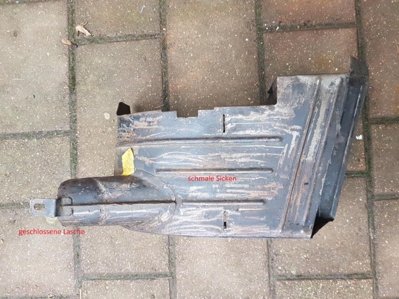 Einmal mit offener Verbindungslasche zur Heizbirne hin und einer breiten Sicke im Boden, sowie eine Ausklinkung seitlich am Ende des Kastens. Zum zweiten die Sorte mit geschlossener Lasche, 3 schmalen Sicken im Bodenblech und keine Aussparung seitlich. Siehe Fotos. Ich vermute, dass die Variante mit der breiten Sicke die ältere Variante ist. Weiß jemand was hierzu ? Bei welchen Baujahren wurden die Varianten verbaut ?