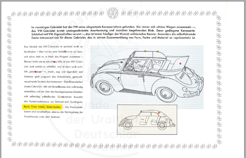 Aktuell kann man das grüne Cabrio von Dirk B. dort auf der Seite sehen, das hat noch die original Schonbezüge über den Türverkleidungen (mit Reißverschluss um die Tasche in der Seitenverkleidung beladen zu können):