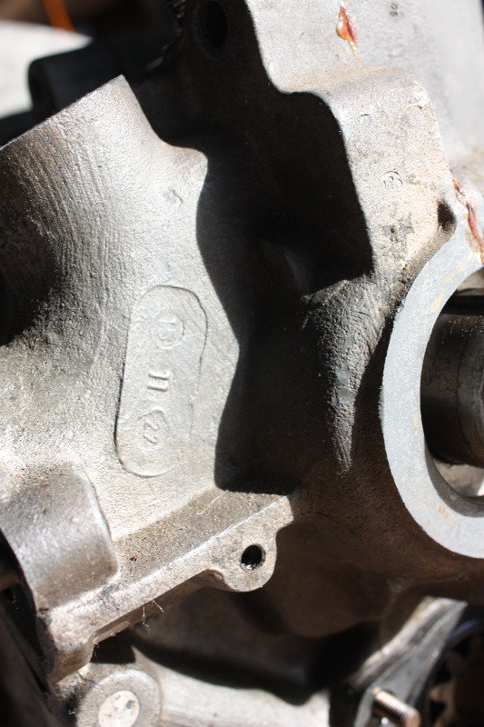 Gehäuse wurde 1967 gegossen. Der Motor wurde von einer externen Firma, also nicht im VW Werk Baunatal, aufbereitet. Das ist die AR002623 rechts am Lima Fuß. Die ursprüngliche Motornummer wurde dann in das neue Gehäuse eingeschlagen. Nach 1959 wurden keine Gehäuse mit Ölablassschraube mehr hergestellt. 30 PS Gehäuse aber noch bis Ende der 60er Jahre für die 30 PS Motoren im Standard Rechteckkäfer.