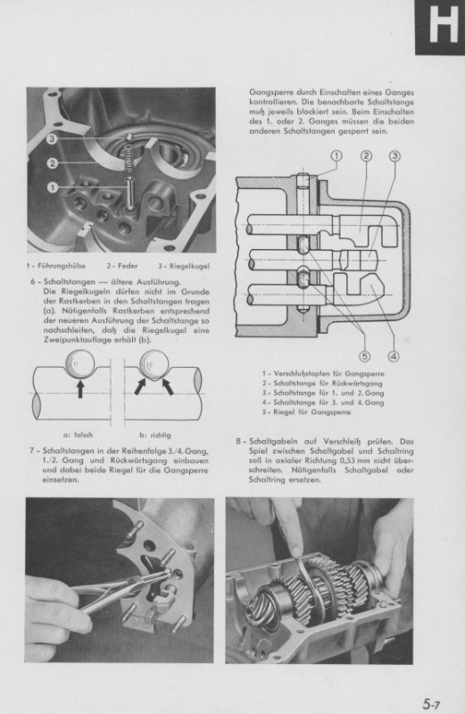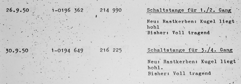 Obwohl die innere Schaltstangen keine neue Teilenummern enthielten gab es jedoch in 1950 eine Änderung ("Verbesserung"). Die sollte jedoch im 1951 Brezel schon inkorporiert sein: