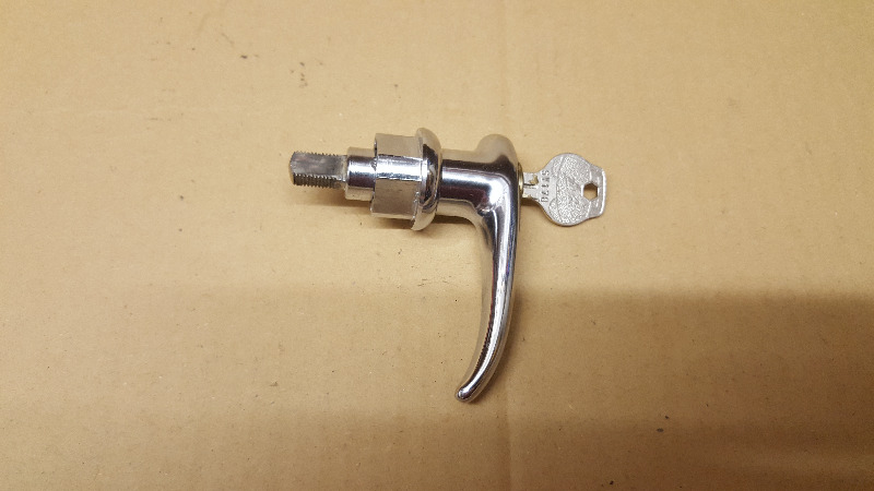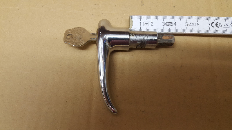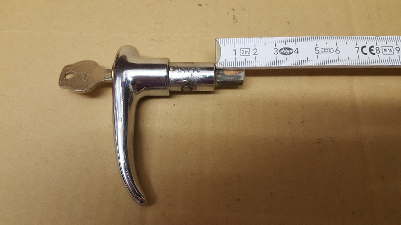 Frank, steck doch einfach den Griff in die Haube, dann den Verschluss innen darüber halten und von innen mit einem dünnen Stift o. ä. die Tiefe bis zum Gewinde messen, Anschließend noch ein paar Millimeter für die Mutter und die Zahnscheibe dazu rechnen, dann hast Du den Betrag, um den das Gewinde verlängert werden muss.