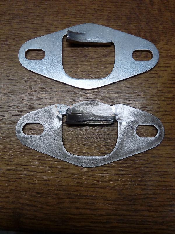 heute nochmal in Ruhe frisch angegangen.Dabei habe ich dann doch mal den ersten Gang reinbekommen. Normaler Weise legt man den Schalthebel nach links bis an den Anschlag. "Gefunden" habe ich die Schaltgasse aber ein gutes Stück vorher. Regulär rechts für dritten und viertetn und links ersten und zweiten Gang. Jetzt liegt der erste und zweite in der Mitte,also bevor man an den Anschlagpunkt gelangt.. Ich habe jetzt ganz pragmatisch die Schaltplatte ausgebaut ,den Anschlag rausgetrennt und versetzt wieder eingeschweißt und verputzt. In dem Zug konnte man die Anlagefäche und die Lauffläche am Bogen für den Rückwärtsgang sauber egalisieren.