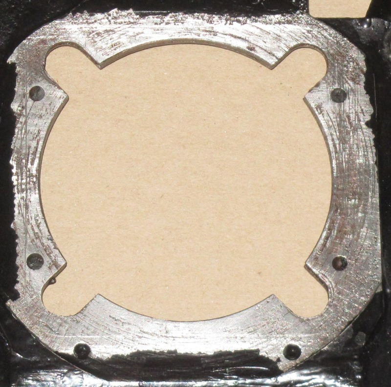 Als zweite Schraube habe ich die diagonale herausgeschraubt und auch hier ragt das "Ohr" in die Bohrung.
