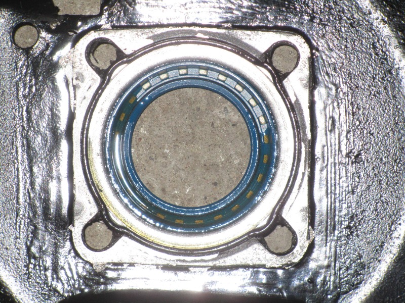 Nach einer Woche hing dann doch wieder ein Tropfen Getriebeöl unten am Bremsträger. Also alles wieder demontiert und siehe da, der große O-Ring hat "4 Ohren" bekommen - er ist an allen 4 Befestigungsbohrungen "ausgewichen".