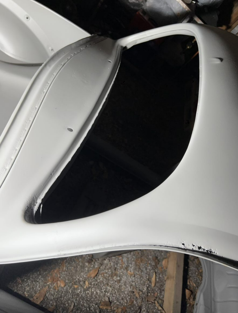 - oder Du besorgst Dir von einem Schlachtauto (das muss kein Ovali oder Brezel sein, die Dachhaut passt auch von späteren Modellen) die durchgerostete Partie, so hast Du dann die richtige Wölbung des Bleches und vielleicht trennst Du das Stück am Schlachtauto so großzügig raus, daß auch das unter der Regenrinne befindliche Blech enthalten ist. Dadurch vermeidest Du das Öffnen der Regenrinne und hast zudem die Möglichkeit die Dachhaut weiter Richtung Fahrzeug innen mit dem alten Blech zu verschweiß und die untere Schweißnaht im Türausschnitt dürfte auch besser zu schweißen und hinterher zu verputzen sein.