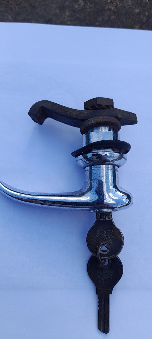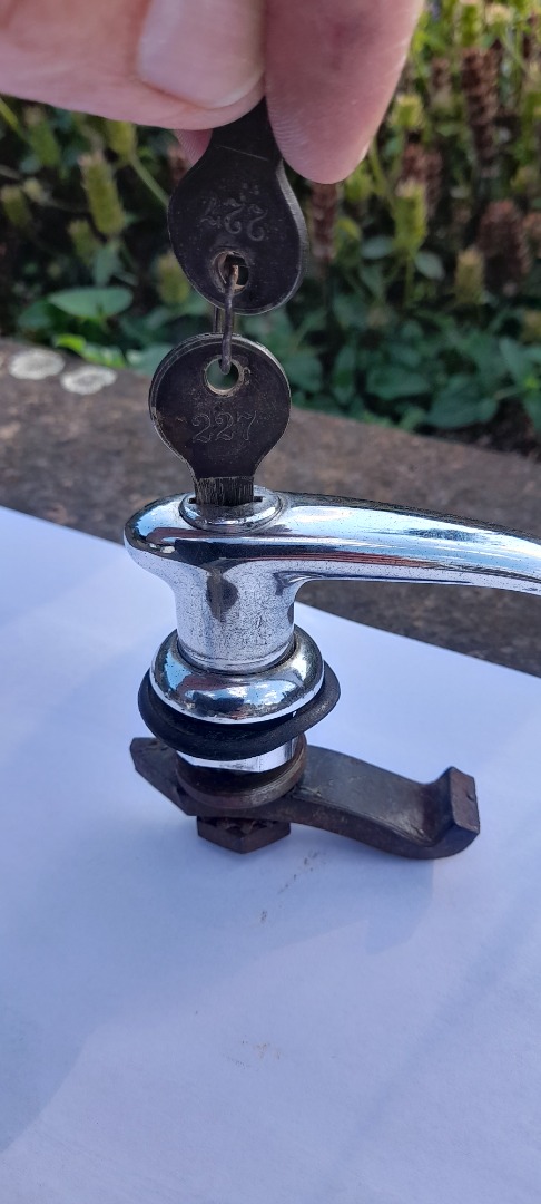 ja, den Brezel Haubengriff gab es auch abschließbar, aber der Griff im Bild stammt von einem Goggomobil. Zu erkennen ist das u.a. an dem Verriegelungsblech, das ist deutlich anders als beim Käfer. Im Prinzip ist der eigentliche Griff aber gleich, nur ist das Gewinde kürzer, das könnte man von einem alten VW Griff abtrennen und am Goggo Griff anschweißen.