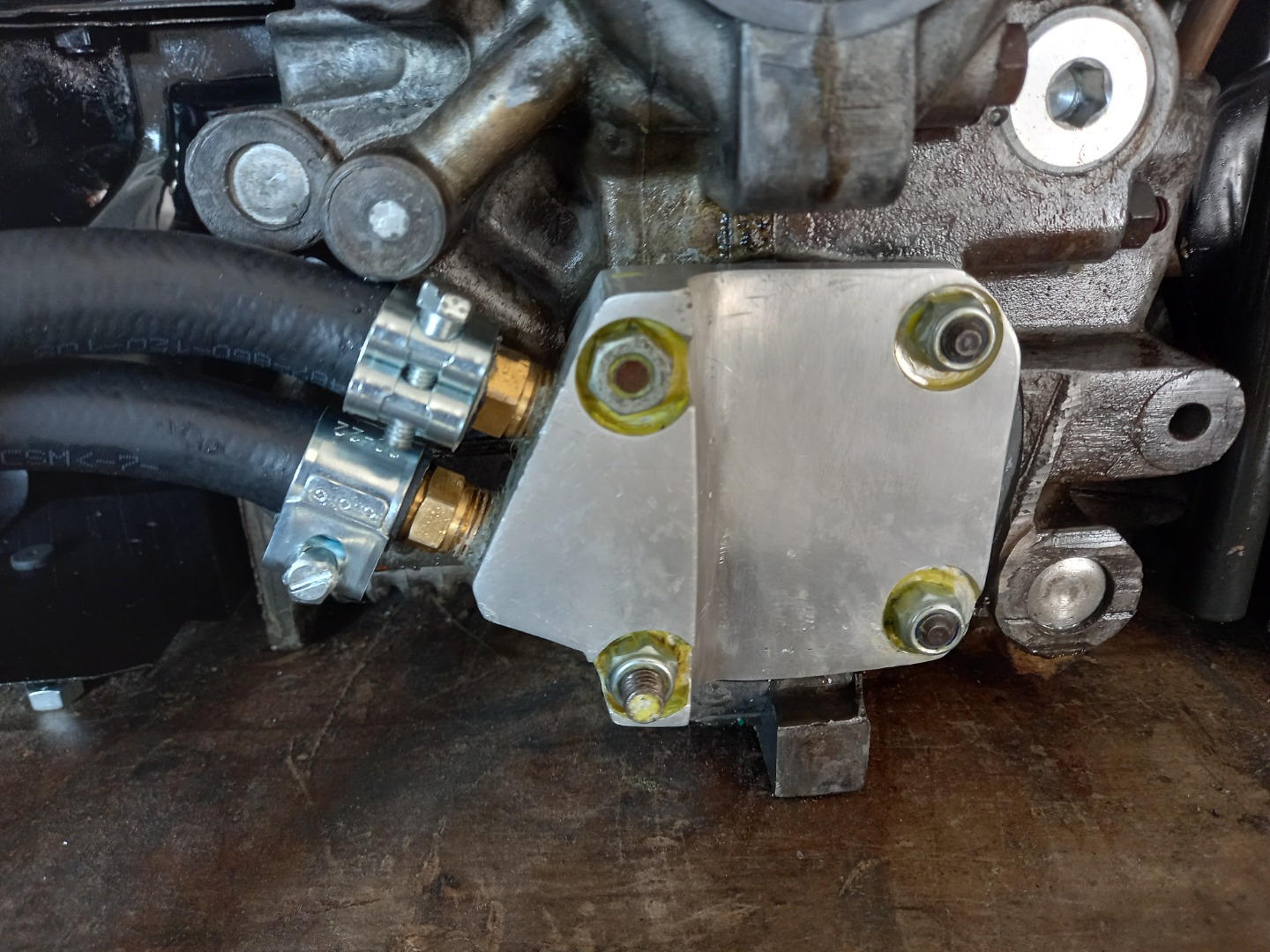 der Pumpe ist nur dafür Platz. Schraubanschlüsse am Ölfilterhalter haben