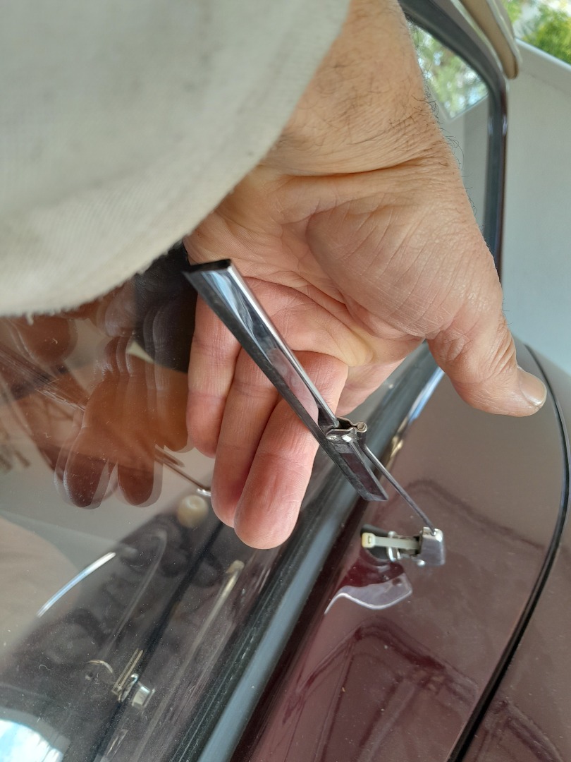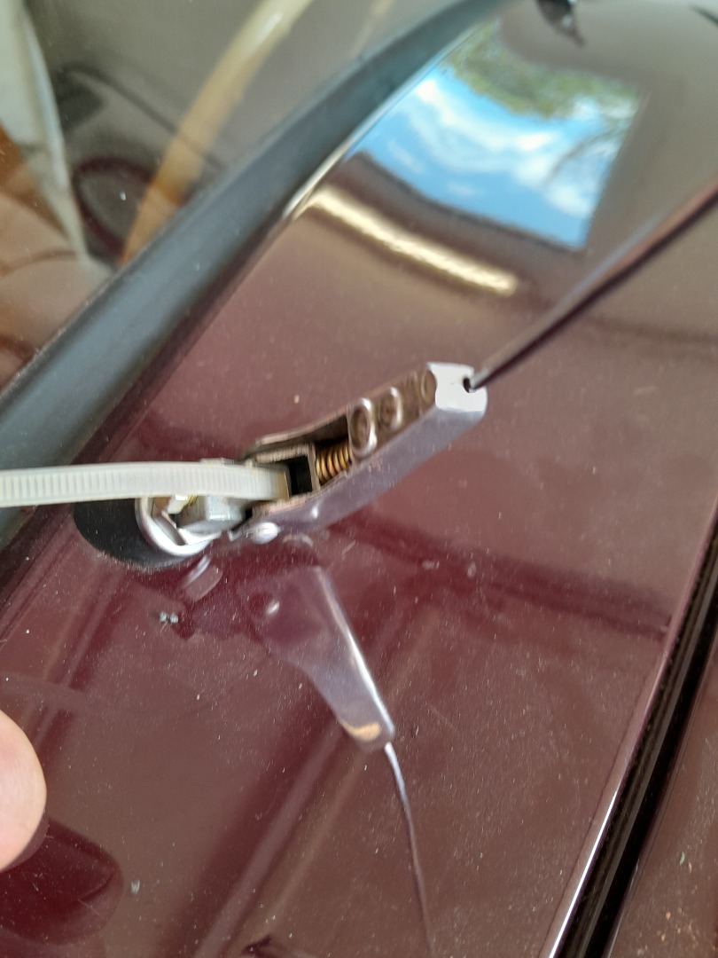 hier meine Idee die Wischerblätter zu schonen. Ein Stück Rasterband / Kabelbinder in das Spannstück geschoben hält das Wischerblatt auf Abstand.