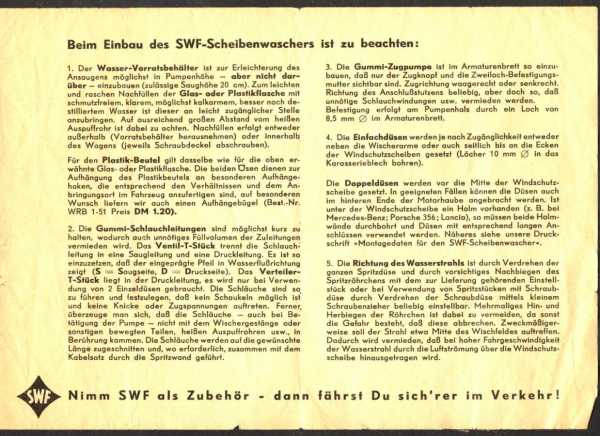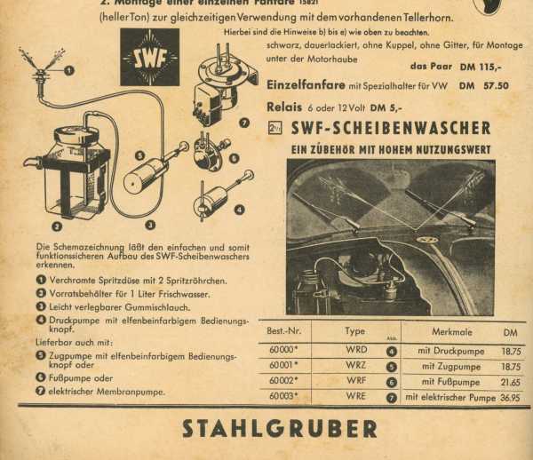 ich bin mir sicher eine Einbauanleitung für deine Wischanlage gescannt zu haben, finde sie aber im Moment zwischen den tausenden von Scans nicht wieder. Deine Version stammt aus den späten 50er bis frühen 60er Jahren. Zu erkennen an der Zugpumpe mit Gummibalg. Bei den frühen Modellen sah die Pumpe etwas anders aus.