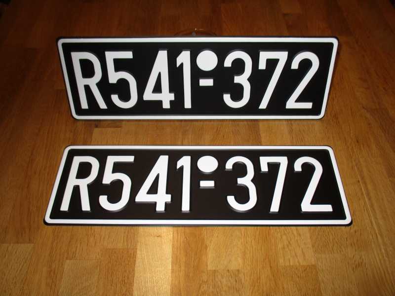 Wenn jemand Interesse an Besatzungskennzeichen haben sollte , die Firma: Schilderfabrik Ernst Günter Müller in 57648 Unnau-Korb stellt diese in sehr guter Qualität nach Originalmaßen her. Bei mir wurden pro Stück um die 30 Euro plus Steuer berechnet. Man ist dort sehr freundlich und hilfsbereit, alles wurde telefonisch besprochen, und nach kurzer Zeit wurde durch UPS ein gut verpacktes Paket mit beiliegender Rechnung geliefert.