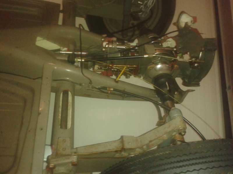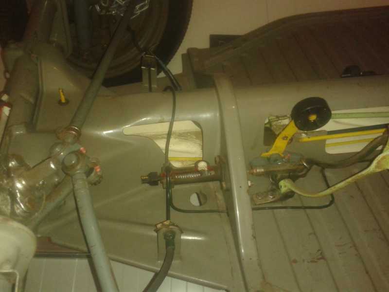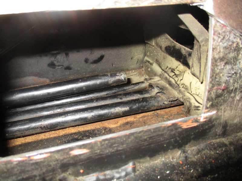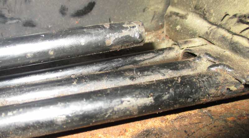 Bevor Du jetzt hoffentlich entgültig das Rohr festschweißt,erkundige dich genau über die richtige Position. Ich würde sagen, das Rohr liegt ganz vorne (Rostabbildung) Bin mir aber nicht sicher. Ich rate Dir dringend an einer zweiten Stelle den Rahmen aufzuschneiden und noch einen Schweißpunkt zu setzen und zwar etwa auf der Höhe, wo die Rückenlehnen der Vordersitze zu Ende sind. Von hier aus geht in leichtem Bogen das Führungsrohr nach oben, hinten zur Rahmengabel. Unbedingt beim Schweißen darauf achten, daß gut durchgeschweißt ist, abernicht das Rohr innen die Form verliert, sonst kann man keinen Kupplungszug mehr wechseln.