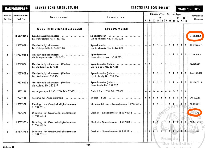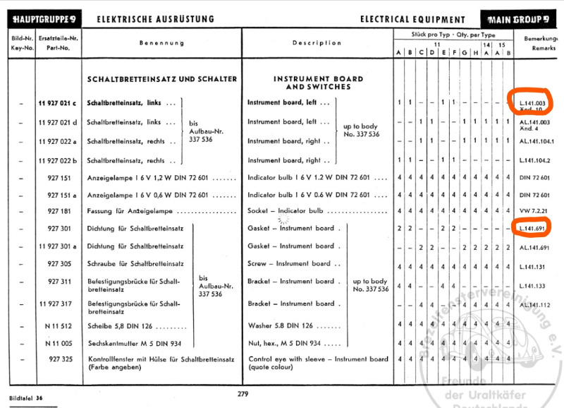 Bei den Schalttafeleinsatz kann ich mir noch denken, den Farbe sei die einzige Unterschied, aber weshalb soll es dann auch noch unterschiedliche Dichtungen geben für Standard und Export-Wagen?
