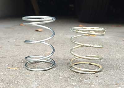 Am besten die alte, originale Feder und auch Hebelmechanik beibehalten, wenn noch i.O. (in 99% der Fälle). Andernfalls zumindest eine originale Feder kaufen: