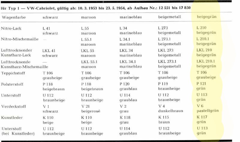 Hallo zusammen,wer besitzt ein Cabriolet mit V6 Pastellgrünem Verdeck und kann mir Fotos senden? Ich habe von meinem 53er keine Fotos mit Originalverdeck und benötige eine Vorlage für eine etwaige Nachfertigung. Leider war meine Recherche bei verschiedenen Verdeckspezialisten bisher erfolglos. Anbei findet Ihr die seltene Farbkombination meines Modells. Auch Fotos eines L210 beigegrünen Ovali sind willkommen. Vielen Dank