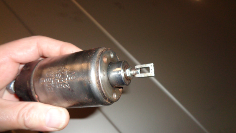Gemeint ist die Öse am "Zuganker" des Magnetschalters der über eine Gabel das Ritzel in Richtung Schwungrad schiebt. Normalerweise ist diese Öse fest mit dem Zuganker verbunden, hier ist sie auf einen Gewindebolzen aufgeschraubt und mit einer Mutter gekontert, also in der Länge einstellbar.