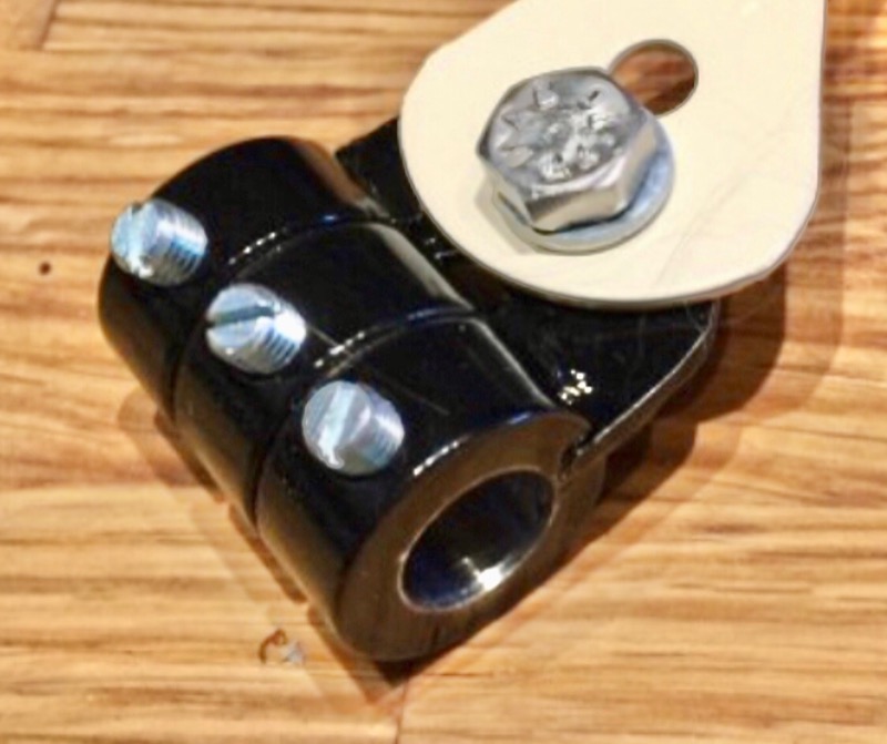 am meisten Kopfzerbrechen bereitet mir die Klemme am Ende mit den 3 Madenschrauben (siehe Foto). Sieht aus, wie etwas vom Türband einer Zimmertüre. Die Laschen sind jedoch immer in der Mitte geteilt, genau da, wo die Schraube durch muss.