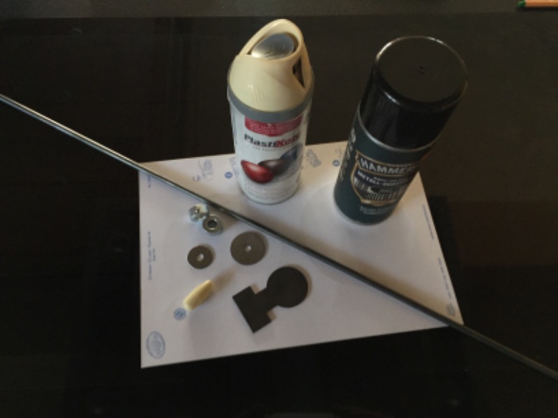 Ich bin dann mal eben in den Baumarkt gegangen und hab versucht, die Teile zu bekommen. Es geht schon los mit dem Rundstab: 6 oder 8 mm? Der ovale Knopf fürs Ende ist da natürlich nicht zu bekommen. Eventuell etwas aus dem VW Zubehör? Etwa der vom Blinkerhebel?