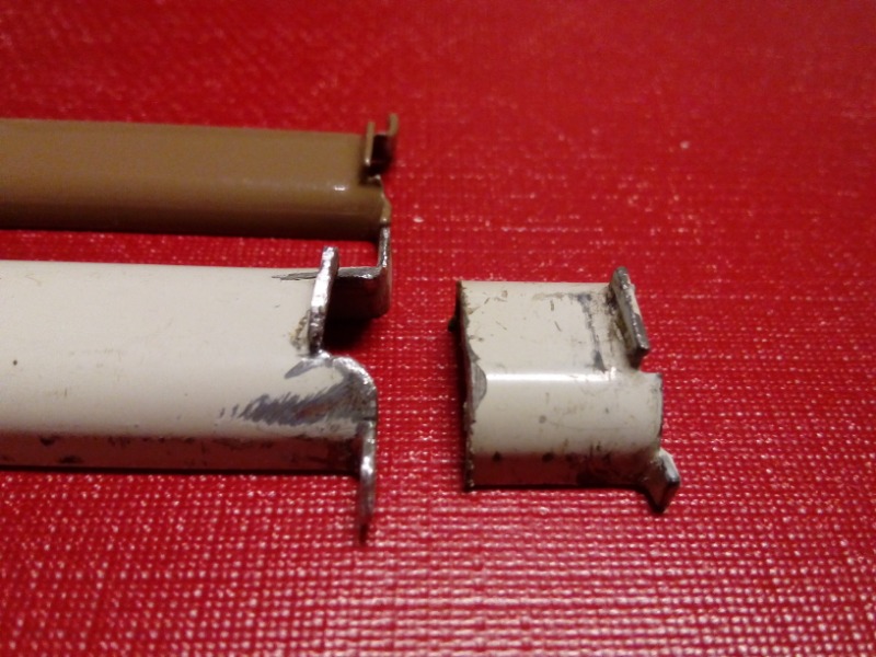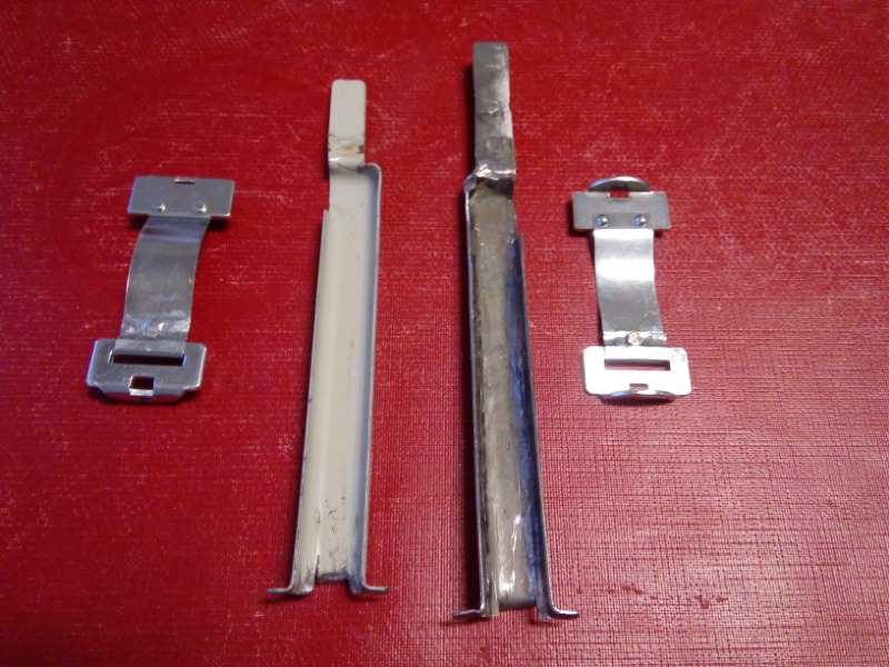 so ein Lenkstockschalter mit mehr als drei Anschlüssen benötigt auch eine größere Kabelführung. Für die rechte Seite habe ich sie gespiegelt selbst angefertigt.Ich brauchte einen zweiten Anlauf.Eine alte Regalaufhängunsleiste hat mir dabei sehr gute Dienste geleistet. Der U-Stahl ist innen gute 13 mm breit. In Ermangelung eines 12mm breiten Stahls habe ich kombiniert was gerade rumlag.Auch das Ende der linken Kabelführung mußte eingekürzt werden. Von welchem VW sind die breiteren Kabelführungen? Beim Einkürzen ist darauf zu achten das die äußeren Laschen im Lenkstockschalter liegen und die mittlere davor.Dadurch ist sie fixiert und kann nicht mit den Kontakten in Berührung kommen.