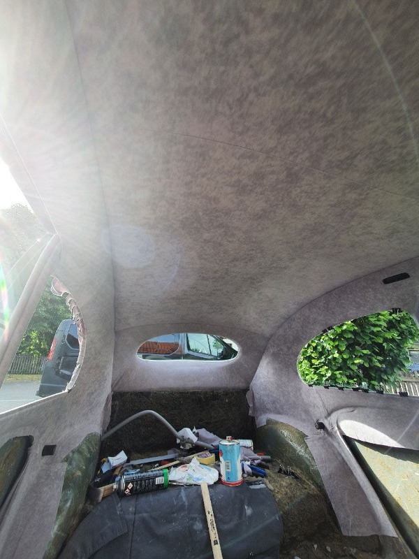 Die Falte am Ovalfenster bekomme ich vermutlich mit mehr spannen weg. Mach ich aber erst bei der Teppichmontage.