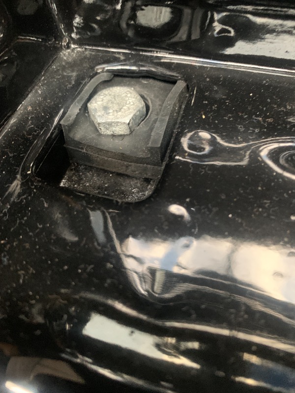 eher zu weit vorne. Die Verbindungsschraube zum Rahmen sitzt hinten in der Aussparung, So ähnlich sieht es auch bei der hinteren Rahmenbefestigung aus.