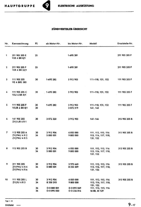 NACHTRAG: Bosch 0231129010 wäre vielleicht den Typ 2 Verteiler für 25 PS (211 905 205F, auch ohne Unterdruckdose):