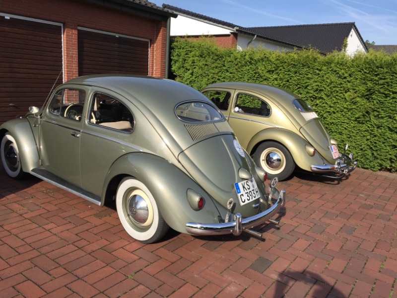 Nur wenn ich mir den Lack anschaue hat 1-2 kleine Läufer drin und an den Dichtungen hinten sind Farbreste. Ich hab gehört das der Einschicht metallic Lack nicht einfach sein soll. Ich habe gedacht er ist schlecht nachlackiert. Letztes Jahr in Holland stand auf einen VW / Käfer Treffen ein Ovali in der gleichen Farbe auch mit lackierter Rückscheibendichtung.