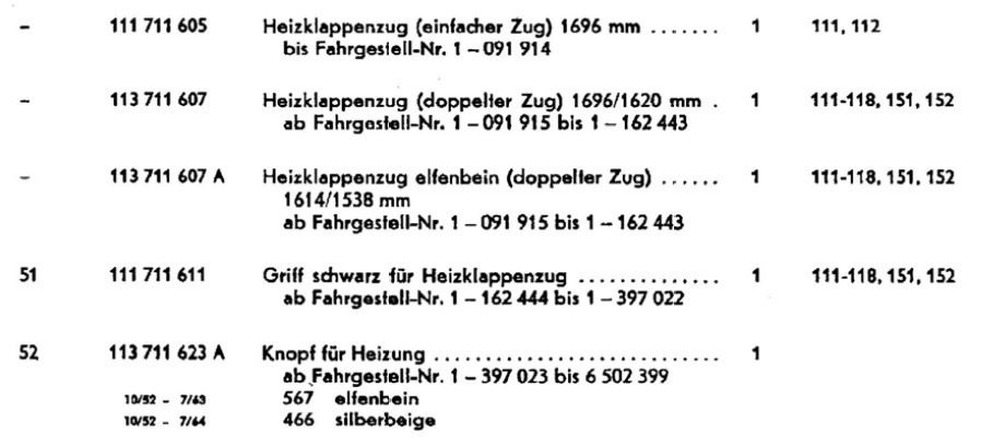 Auswechseln ist nicht aufwendig. Ab 1949 gibt es ein doppelter Zug schon ab den Betätigungshebel oder Drehknopf ab 1952 (Zwitter / Ovali und später).