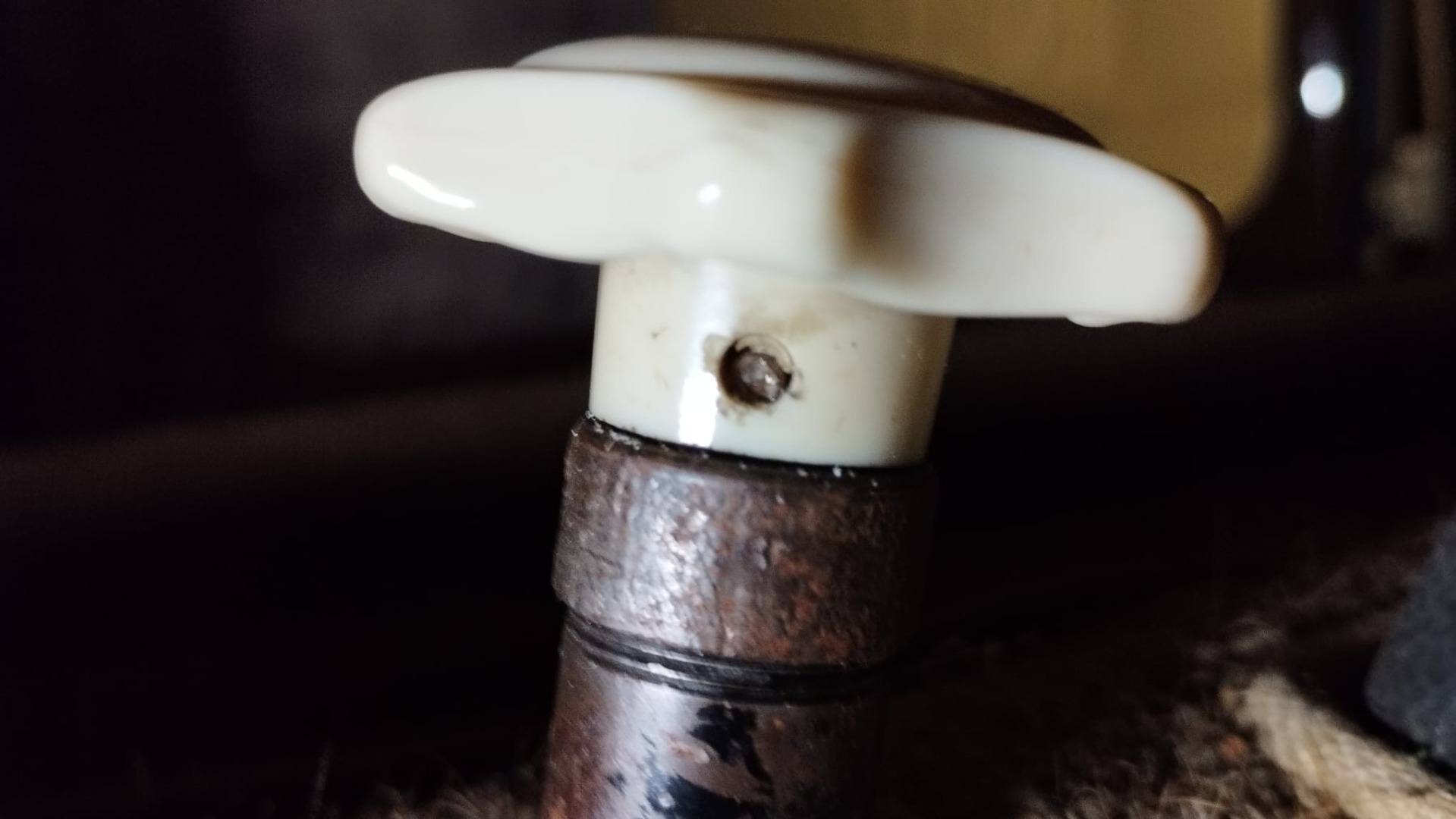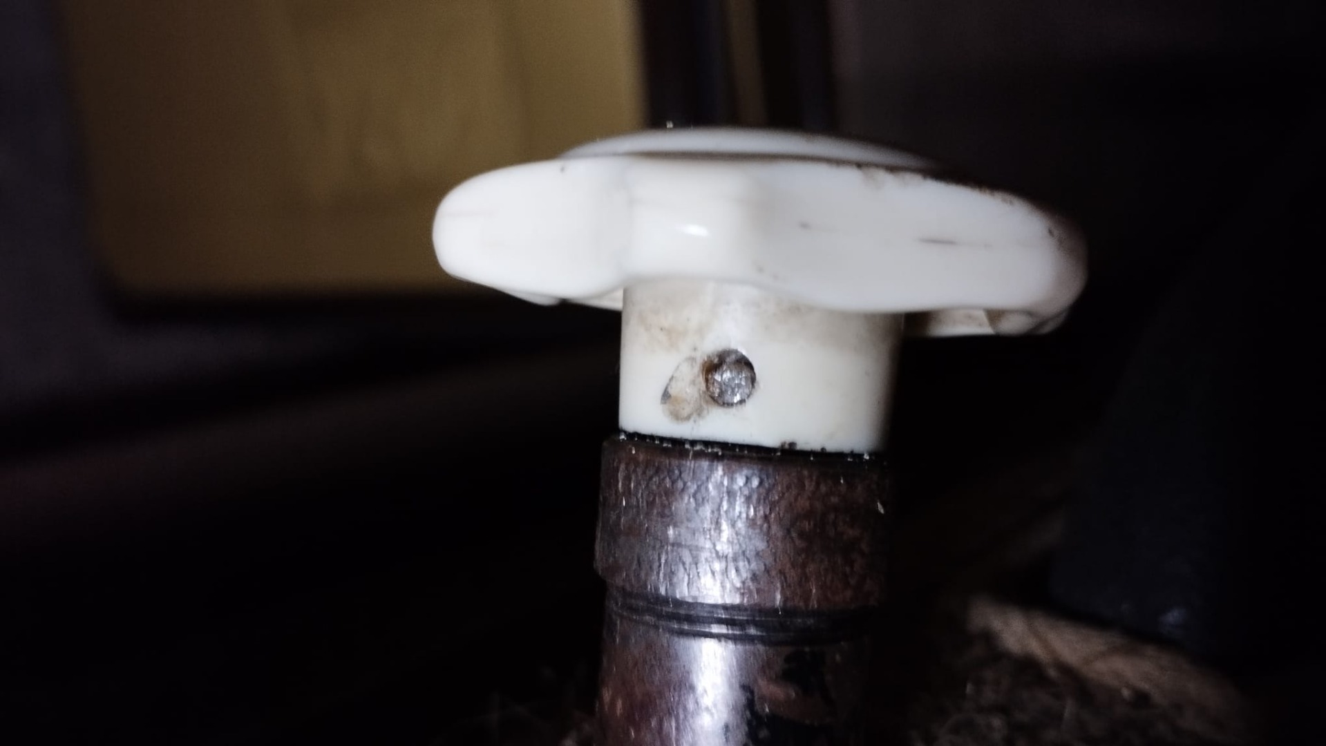 an meinem 54er Ovali will ich den Teppichsatz entfernen. Dazu muss der Drehknopf ab.