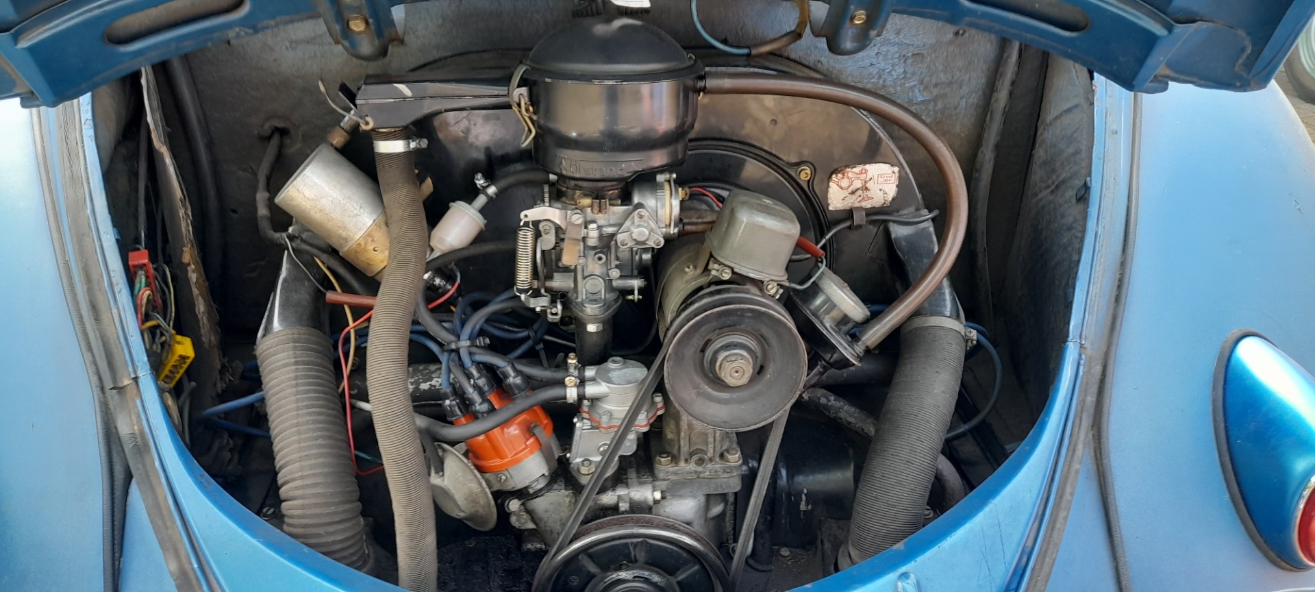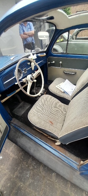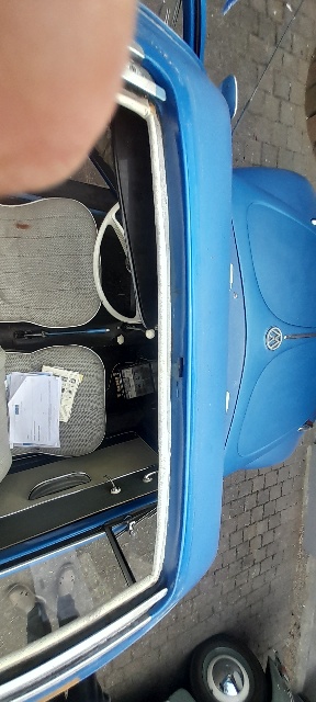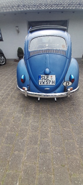 Hallo, ich habe mir den vermeintlichen Rechteck Faltdachkäfer mit EZ. Juli 1957 wie es in der Zulassung steht ,einmal kurz etwas genauer angesehen. Zuerst einmal das wesentliche, laut Vorderachsnummer 1873271 und Aufbaunummer 223546 müsste es ein im Januar 1958 erstmalig zugelassene Fahrzeug sein. Das Faltdach scheint Original zu sein, die Winkerschächte sind irgendwann einmal verschlossen worden und der weiße Kunststoffhimmel ist auch später einmal angebracht worden (er passt nicht so richtig ). Wenn ich jedoch die Fahrgestellnummer 1-0629000 mit der Liste vergleiche ,wäre die Bodenplatte von April 1954. Mann kann das Baujahr der Bodenplatte evtl. etwas eingrenzen. Bis wann wurden die Gummimatten im Fußraum, über die auf der Bodenplatte angeschweißten Befestigungspunkte gehalten? Gab es das im Januar 1958 noch .Es ist auch noch eine Nummer ,vom Belag auf dem Mitteltunnel zu sehen 113863311D. Des weiteren hatte er Original mal die Kotflügel mit den Röhrchen vorne, sieht man noch neben der Reserveradmulde .Leider war keine Zeit für einige Bilder von unten zu machen, er hat dafür aber Trittbretter mit Brezelbezug mit den Verstärkungen unterhalb (sieht aber aus wie Eigenbau).